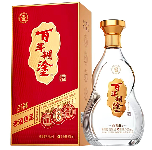 500ml百年糊涂百福白酒52度盒装#